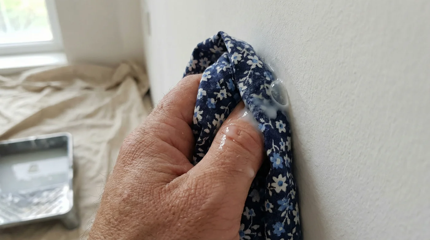 Vierte el almidón líquido directo en una charola para pintar. No intentes diluirlo con agua; necesitas toda su fuerza estructural. Toma un rodillo de esponja limpia y pásalo por la pared, creando una capa generosa, pero cuidando de no generar charcos que escurran hasta el suelo. Sentirás cómo la temperatura de la habitación cambia ligeramente con la humedad del líquido. Inmediatamente, toma tu primer panel de tela y alinéalo desde la esquina superior del techo. Si el muro es muy alto, usa dos o tres chinchetas temporales para sostener el peso de la tela mientras trabajas con las manos libres.