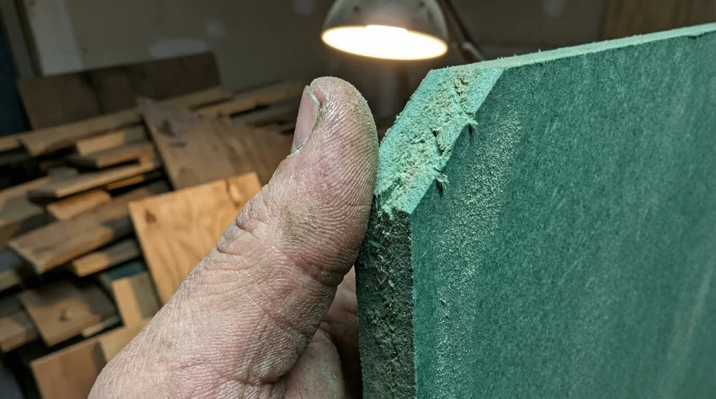 Cuando te enfrentes a tu primera hoja de MDF verde antihumedad, notarás de inmediato que es denso. Muy denso. Su peso exige respeto y un par de manos extra para moverlo, pero a cambio te ofrece cortes limpios sin las molestas astillas que siempre arruinan los bordes del contrachapado. Para cortarlo, usa un disco de carburo de tungsteno de al menos 60 a 80 dientes; esto garantizará que los cantos queden suaves como el cristal.