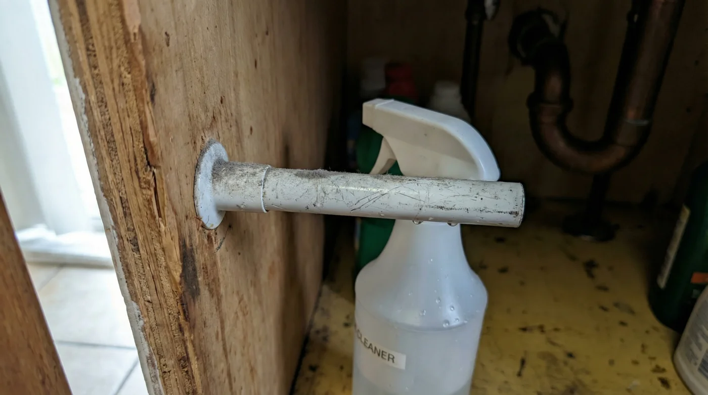 El sonido es inconfundible: abres la puerta bajo el fregadero y se escucha el golpe hueco de una botella plástica cayendo contra otra. Inmediatamente te recibe ese sutil olor a humedad encerrada mezclado con limpiador de pino derramado. Intentas alcanzar el desengrasante que quedó al fondo, pero antes tienes que sortear un campo minado de esponjas secas, cajas de jabón y cepillos que apenas logras mantener en equilibrio. Es un rincón de tu casa que respira con dificultad, asfixiado por objetos apilados sin sentido. Te han hecho creer que para organizar este caos necesitas invertir miles de pesos en sistemas de cajones con rieles metálicos que requieren taladros y mediciones exactas. Sin embargo, la solución a este problema crónico no se encuentra en catálogos de diseño costosos, sino en la tlapalería de tu barrio, y cuesta menos de cien pesos.