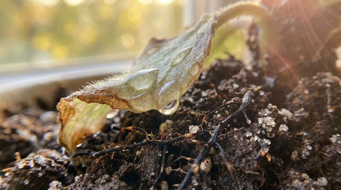 Cuando estas sales entran en contacto directo con las raíces jóvenes en un espacio cerrado y sin el drenaje masivo de un jardín abierto, la savia interior de la planta es literalmente absorbida hacia la tierra por ósmosis. Es una ironía cruel: se deshidratan por exceso de alimento. Ese super sustrato debe ser tratado como un concentrado, nunca como un producto final para tu jardín de interior.