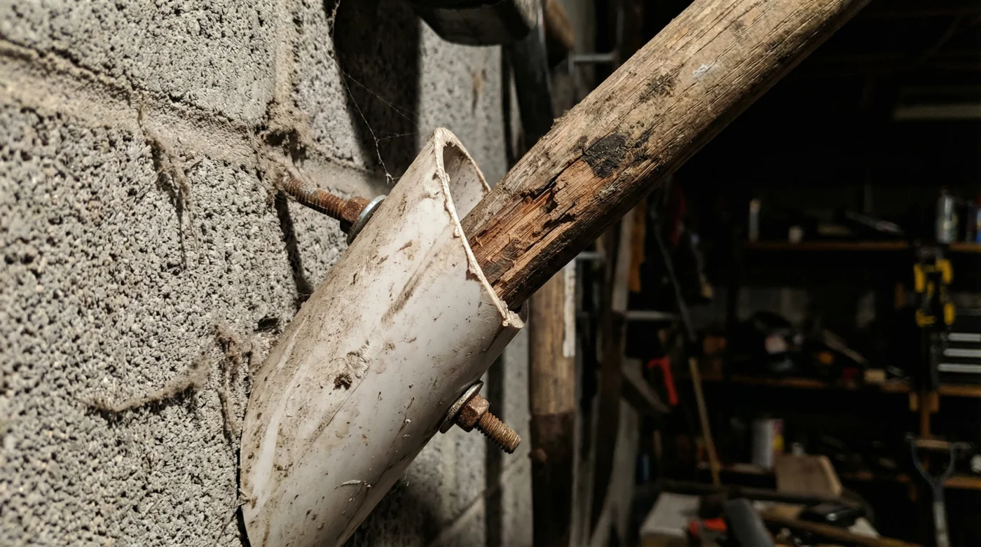 Roberto, un carpintero de 58 años en Toluca, descubrió esta dinámica por pura frustración tras ver cómo sus palas de construcción destrozaban la pared de tablaroca de su taller. Cortó sobrantes de tubería sanitaria de cuatro pulgadas a 45 grados, los fijó a una tabla de pino y deslizó los mangos de sus palas dentro. “No es colgar,” me explicó una tarde mientras acomodaba un mazo de demolición con un solo dedo, “es darle a la herramienta una cama hecha a medida para que descanse.”