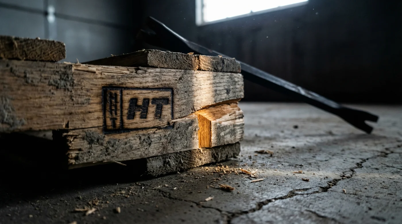 El verdadero secreto de este tesoro callejero radica en dos letras quemadas profundamente sobre la cara lateral de la madera: HT. Estas siglas significan Heat Treated bajo la norma internacional NIMF 15. Al ver este sello, tienes la garantía absoluta de que es madera tratada sin químicos. Significa que fue horneada pacientemente a 56 grados Celsius durante al menos 30 minutos hasta el corazón de la tabla, con el único fin de matar plagas naturales. Es madera completamente segura para entrar a tu casa, sin riesgo de pesticidas tóxicos respirando lentamente en tu espacio íntimo.