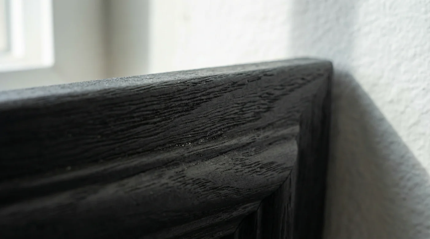 - Apertura de poro: Pasa muy suavemente una lija de grano 220 sobre la moldura virgen. No buscas cambiar la forma del relieve, solo micro-rayar la superficie para que la pintura se ancle mecánicamente.