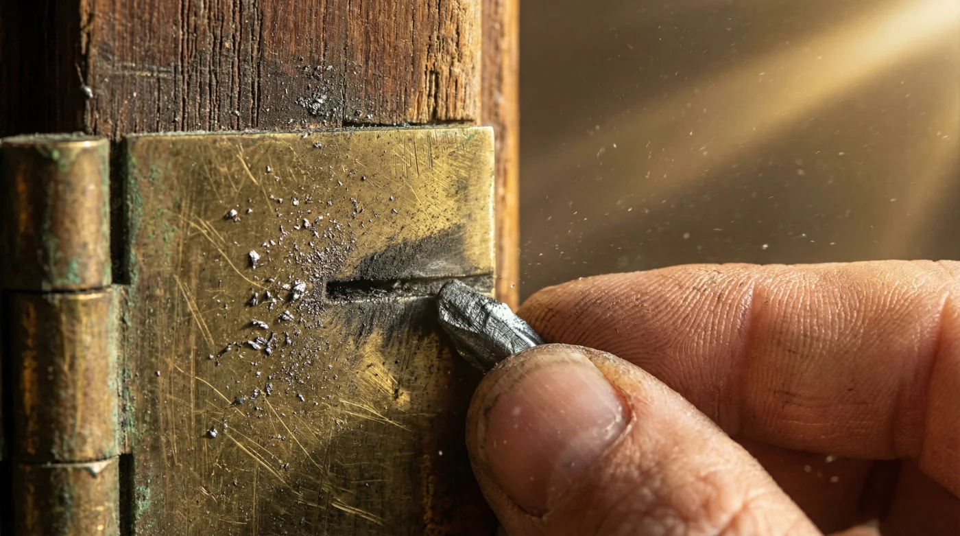 - Minas de lápiz frotadas sobre bisagras ruidosas silencian pesadas puertas residenciales.