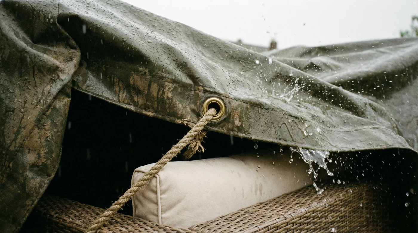 Desde la ventana, observas esa funda de exterior que te costó casi tres mil pesos hace apenas unos meses. Con cada minuto que pasa, notas cómo el agua se filtra oscureciendo la tela, empapando lentamente el interior de los cojines de tu sala de jardín.